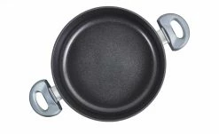 In der Servierpfanne können Steak und Braten, Eintopf und Pfannengerichte sowohl zubereitet als auch direkt serviert werden. Die Griffe aus Bakelit werden nicht heiß, Verbrennen ist also ausgeschlossen.