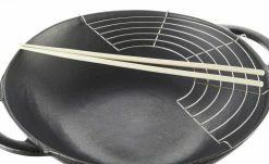Zaubern Sie leckere asiatische Gerichte. Mit diesem Wok geht das viel einfacher. Der Wok ist aus Gusseisen gefertigt. Die OberflĂ€che ist emailliert. Ein passender Glasdeckel ist im Lieferumfang enthalten. Den mitgelieferten Gitterrost können Sie oben auf den Wok legen. Er bietet Platz fĂŒr StĂ€bchen.