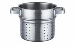 Der Spaghettitopf von MEISTERKOCH besteht aus zwei Topf-Einheiten und einem Glasdeckel. Die beiden Töpfe bestehen aus hochwertigem Edelstahl und sind dadurch langlebig und robust. Der untere Topf besitzt eine praktische Innenskalierung in 0,5er-Schritten. Der obere Topf fungiert als Nudelsieb und kann ganz einfach auf den unteren Topf aufgesteckt werden. Beide Töpfe erlauben durch ihren breiten Schüttrand ein tropffreies Ausgießen. Der mitgelieferte Glasdeckel passt sowohl auf den unteren, als auch auf den oberen Topf. Der Spaghettitopf ist spülmaschinenfest und dadurch einfach zu reinigen.